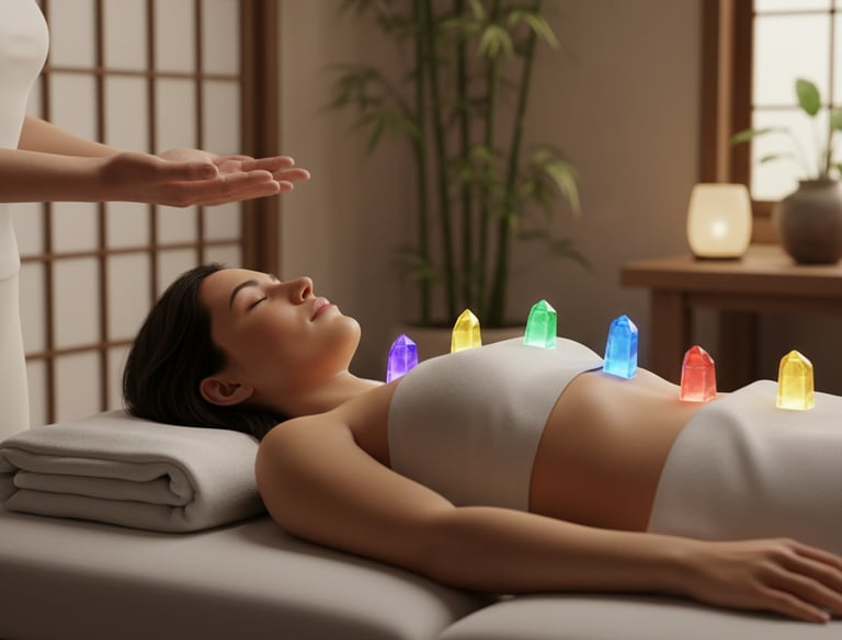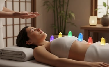 Combina Reiki e cristais para harmonizar os sete chakras e equilibrar as glândulas energéticas do corpo.