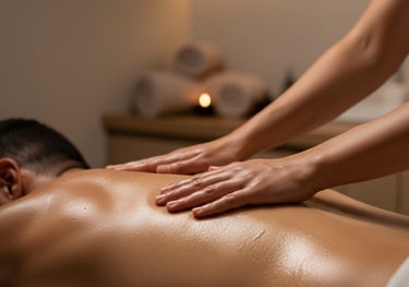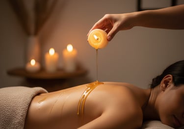 Massagem sensorial que utiliza óleo morno derivado de velas aromáticas naturais, envolvendo o corpo com toque profundo e nutritivo.