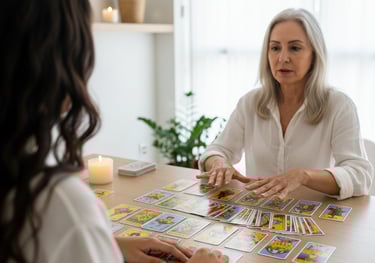 Leitura intuitiva de cartas que acessa símbolos, arquétipos e mensagens profundas para ampliar o autoconhecimento e trazer novas perspectivas sobre emoções, caminhos e decisões.