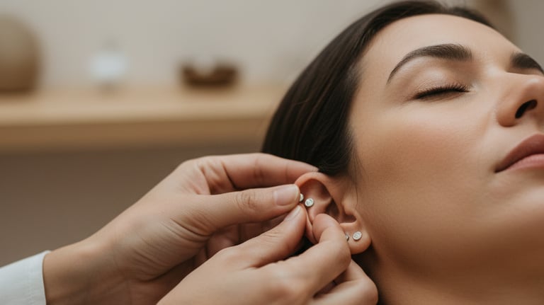 Técnica da medicina chinesa que estimula pontos reflexos na orelha usando sementes, cristais ou esferas, equilibrando funções físicas e emocionais.